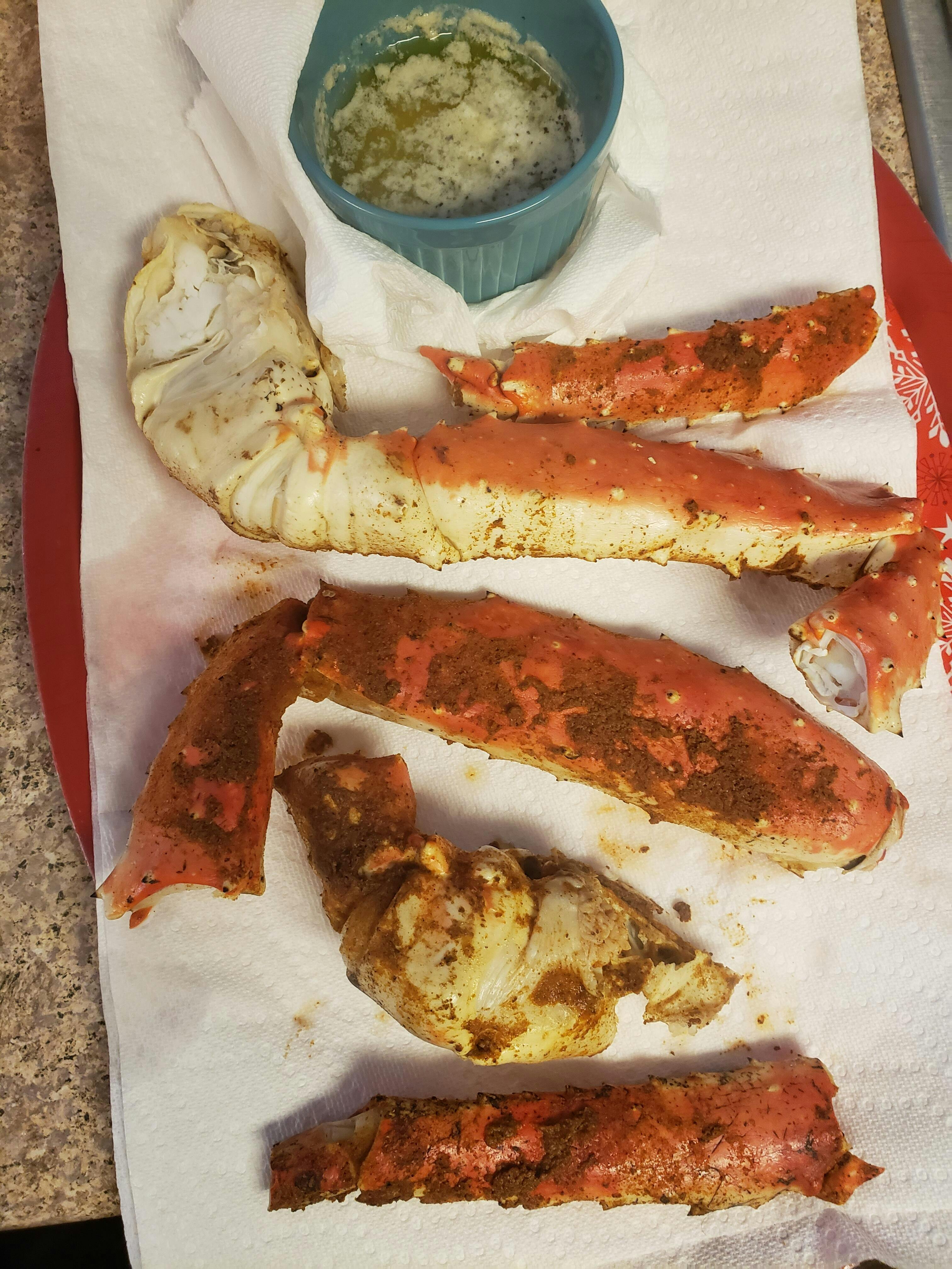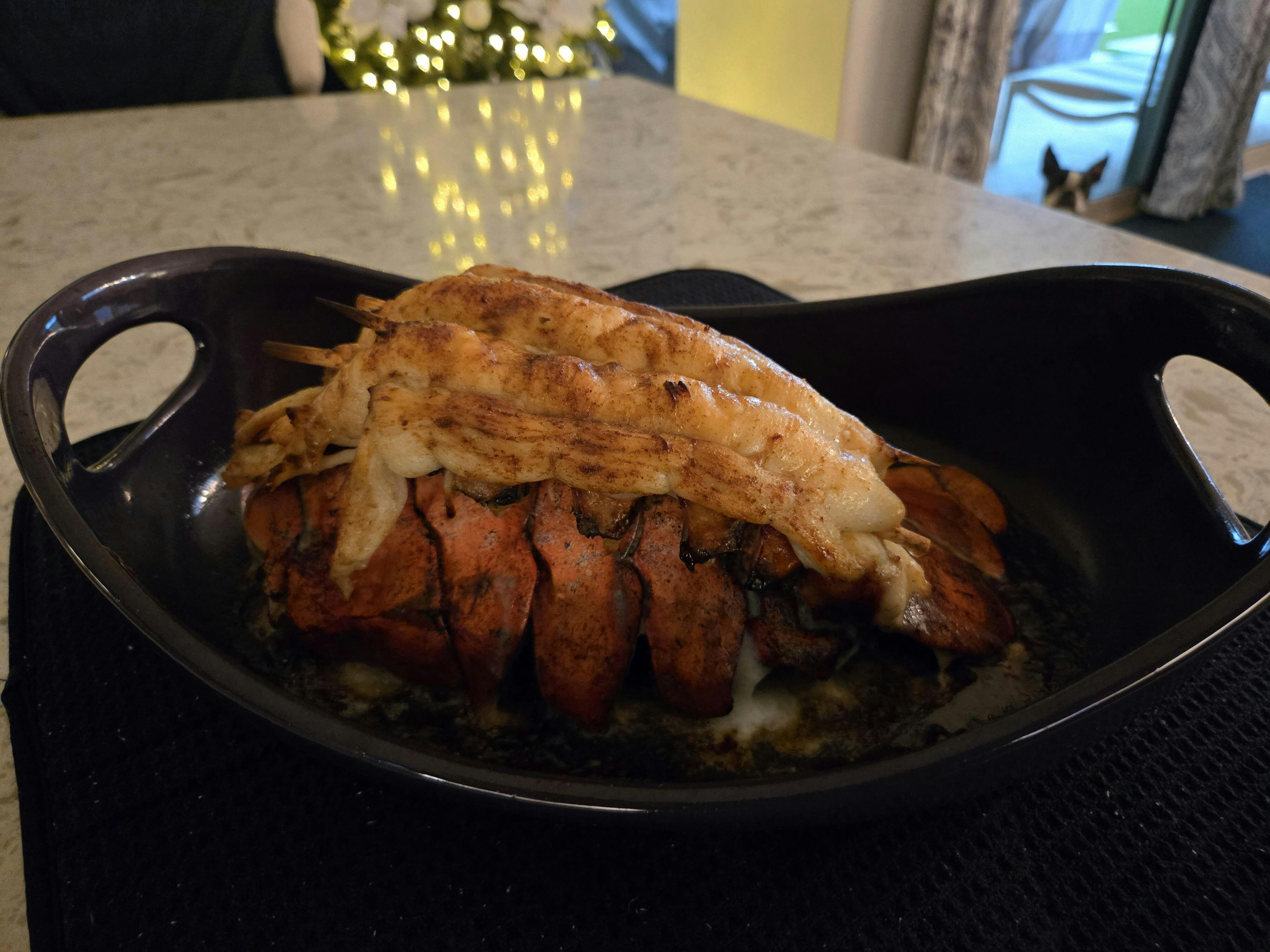 What a wonderful Christmas dinner. The lobster tails cooked up beautifully on the grill, seasoned with a garlic, butter & parsley.